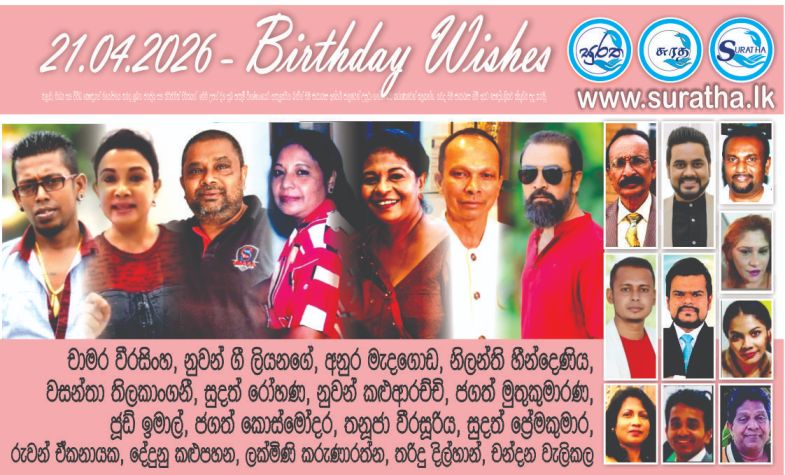 අද දින උපන් දිනය සමරන බණ්ඩාර ඇහැලියගොඩ, සුදේව හෙට්ටිආරච්චි, ඩී.ඩබ්ලිව්. දිල්හාරා, නදීශා රංගනී දයාරත්න, සෙනෙවිරත්න වන්නිනායක, නුවන් ශාලික නවගමුව, නිව්ටන් ගුණරත්න, ගීතනාත් කුඩලිගම, සමිරා හසන්, දමිත් නුවන්, තුෂාන්ත ජීවන සිල්වා, ගයාන් ශානක මුහුන්දිරම්, නලීන් ප්රසාද්, පුබුදු චමත් බස්නායක, චන්ද්ර තිලක් ගුණරත්න, දිමුතු ජයසිංහ, අනුර දසනායක, රුවන් මදනායක, සුසිල් ප්රේමරත්න, අසන්ත සම්පත්, සුනිල් ඩී ජයරත්න, දිනූෂි එන් ධීරසිංහ, කුමුදු පාලිත ජයවීර, සුරේඛා නිල්මිණි ඉලංකෝන්, වෛද්ය චාමරි රණසිංහ ඇතුඵ සියඵම කලාකරුවන්, මධ්යවේදින් සහ සකලවාසී සැමට සුරත මාධ්ය ජාලයේ සුභ පැතුම්…