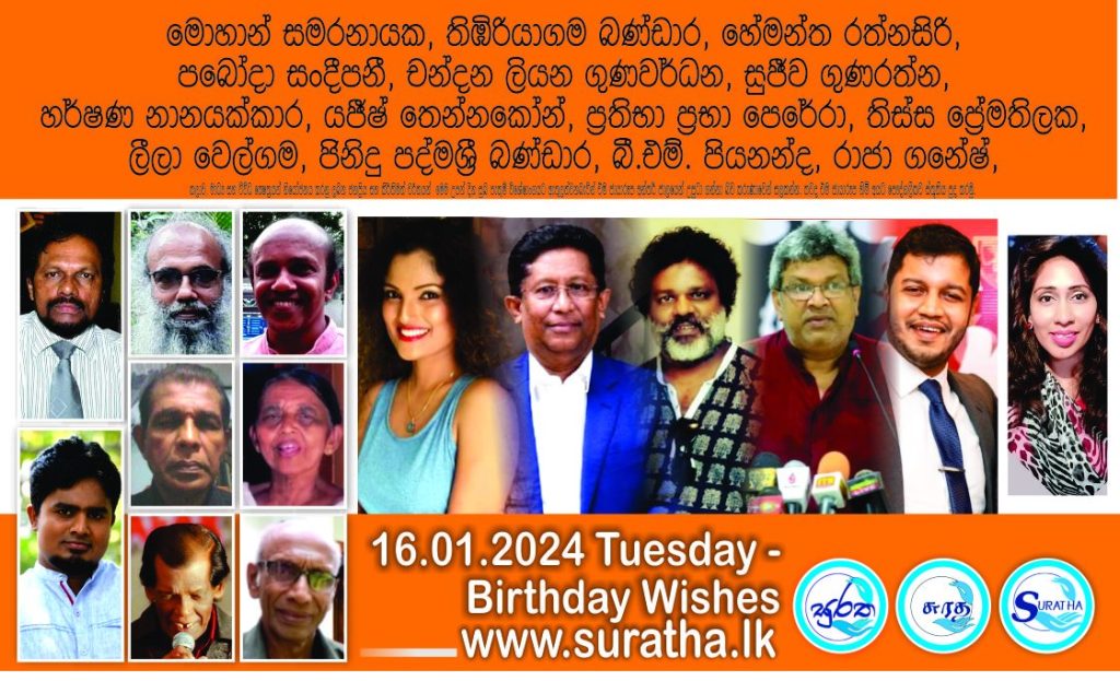 කලාකරුවන් ඇතුඵ සැමට සුබ උපන්දිනක්වේවා !!! 16.01.2024