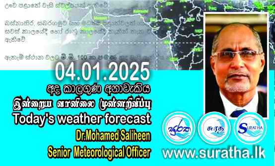 අද ජනවාරි මස 04 දින ඌව පළාතේ වැසි ස්වල්පයක් ඇතිවේ. බස්නාහිර, සබරගමුව සහ මධ්යම පළාත්වලත් ගාල්ල සහ මාතර…