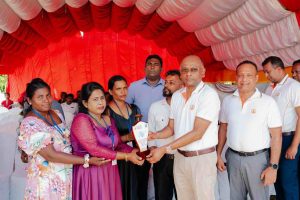 Mr Ajantha de Vas Gunasekara, Executive Director and Chief Financial Officer (second from right), and Mr Keshan Dabare, Chief Manager – Branch Banking (far right) of Sampath Bank, present a memento to representatives of the ‘Madu Sampatha’ Self-Entrepreneurs Association.
