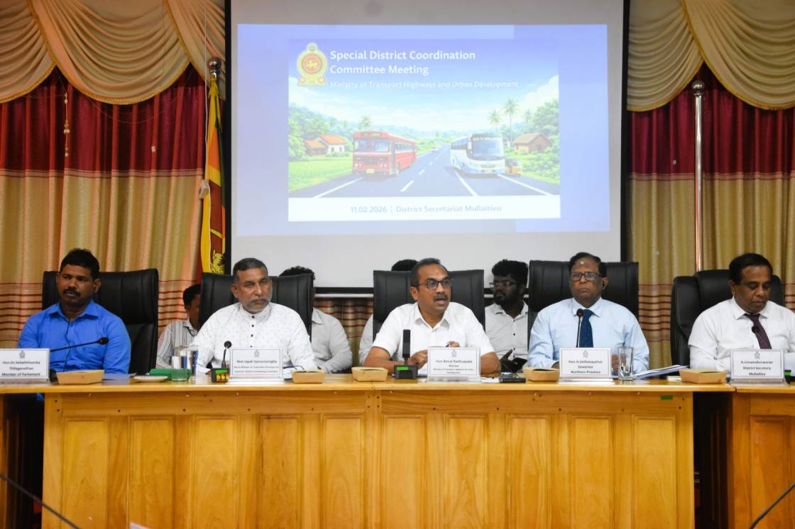 මුලතිව් දිස්ත්රික්කයේ නාගරික සංවර්ධනය සහ මහා මාර්ග සංවර්ධනය පිළිබඳ විශේෂ සංවර්ධන කමිටු රැස්වීමක් 2026 පෙබරවාරි 11 වන දින මුලතිව් දිස්ත්රික් ලේකම් කාර්යාලයේදී ප්රවාහන, මහාමාර්ග සහ නාගරික සංවර්ධන අමාත්ය බිමල් රත්නායක මහතා සහ සමූපකාර සංවර්ධන නියෝජ්ය අමාත්ය උපාලි සමරසිංහ මහතාගේ ප්රධානත්වයෙන් පැවැත්විණි.